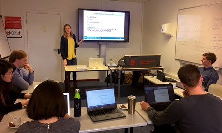 The training consisted of two parts. The first part was a workshop by People in Science, where participants worked with ‘identifying skills and core-expertise in vacancies’ followed by ‘communicating your skills and core-expertise’ through Linked-In, mock-interviews and other settings.