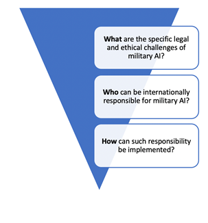 The second research question examines who can bear international responsibility for the wrong done with the use of military AI, and analyses the legal avenues that would allow for holding both individuals and States responsible.